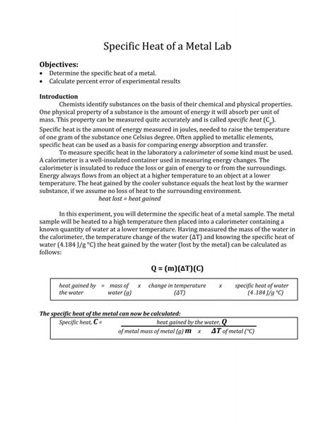 Read Online Specific Heat Of Metal Lab Answers Epub